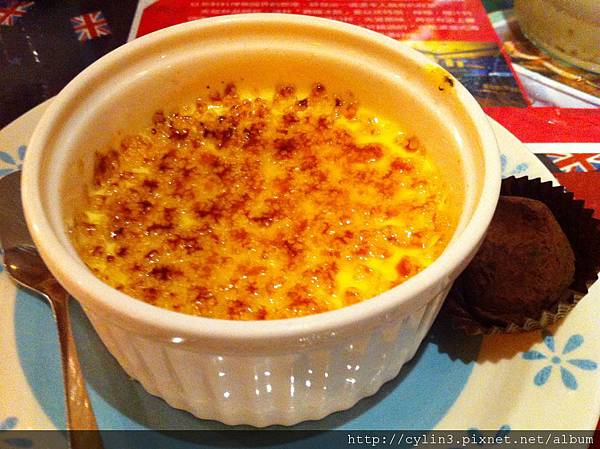 甜點我跟C大都點了焦糖布丁,手工布丁搭配被火烤過的糖霜,滑溜中添增了卡滋卡滋的不同享受,