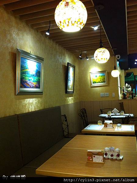 一踏入店內呈現的風格卻不同,黃色的燈光與牆壁上貼滿老闆娘親手畫的油畫,令人感覺很溫馨!
