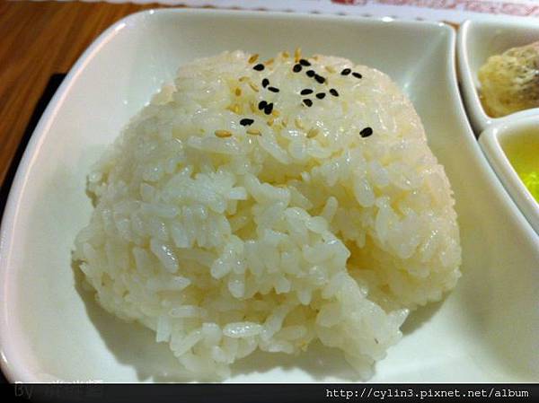 瞧瞧這米飯粒粒分明,上頭再灑上少許芝麻,嚼起來軟硬適中,還越嚼越香,好吃!