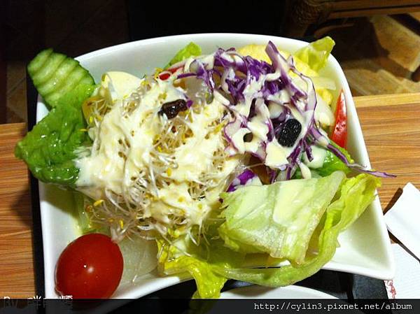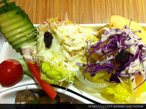 沙拉很新鮮,上面的沙拉醬是主廚特製的水果優格醬,整體而言鮮甜清爽。