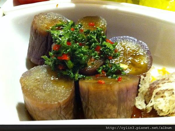 清蒸茄子淋上少許微辣的醍醐調味,很有媽媽的味道,這道菜是真功夫呀!茄子料理胖胖顰覺得超難的,技術不好很容易太爛或是硬梆梆的狀況發生,這樣軟硬恰到好太厲害了!