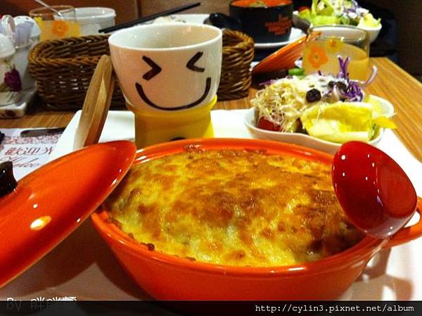 接著上桌的是Sam的義式肉醬焗烤飯,是不是超卡哇依!