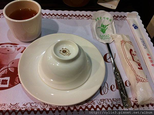 坐定後,餐具立刻擺上,湯匙還附上套子,令人感覺很衛生很安心,也馬上添好了熱茶,動作都超迅速的。