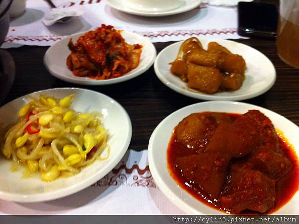 其實原本是想去吃春川達卡比,好幾年前去韓國玩一直對春川辣炒雞肉念念不忘,終於在網路上找到一家聽說有正統風味的,怎知...沒預約是沒位子的~>_<~只好隨性的在附近找了一間店。