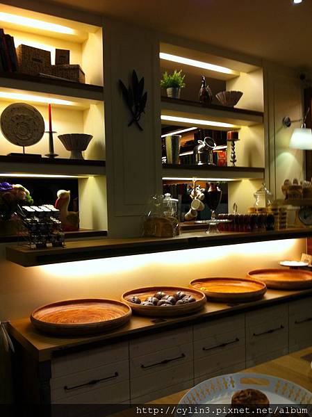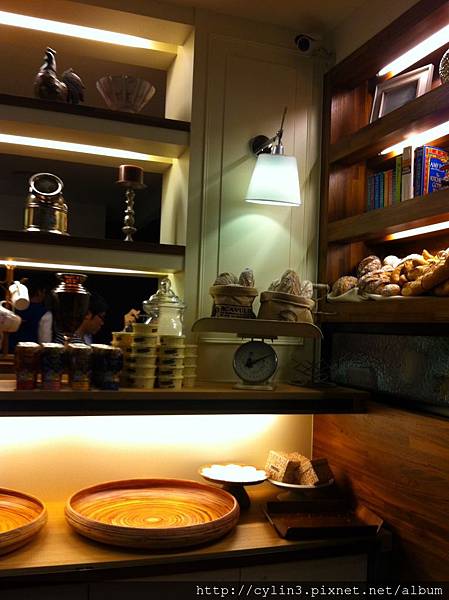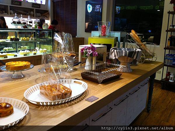 以招呼櫃檯為主,右邊是麵包購物區,左邊是用餐等候區。