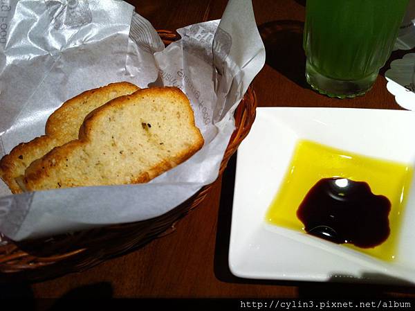 接著上桌的是手作麵包,麵包很有嚼勁,搭配油醋醬吃風味更香。