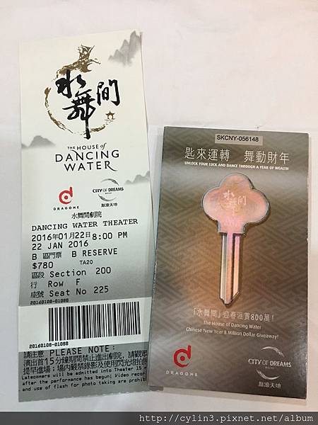 把行李放下後,我們一行人就匆匆轉往「新濠天地」,來欣賞大家號稱來澳門必看的「水舞間」表演,「水舞間」每日有兩場演出,一場為傍晚17:00一場為20:00,票價部分分為四種價位,你也可以搭配其他表演或娛樂設施買套票,詳細可以參考各旅行社官網(胖胖顰是委託可樂旅行社代購),為什麼要先在台灣代購呢?畢竟大老遠飛來一趟,時間有限,你不知道想看的場次是否還有票,因此早點預購會比較安心啦~旅行社代購後,到澳門仍必須提前一個小時到現場拿旅行社提供的資料兌換真正的票券喔~然後在表演前15分鐘就要入場!