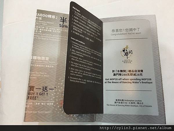 給大家瞧瞧「水舞間」的票券與活動卡,