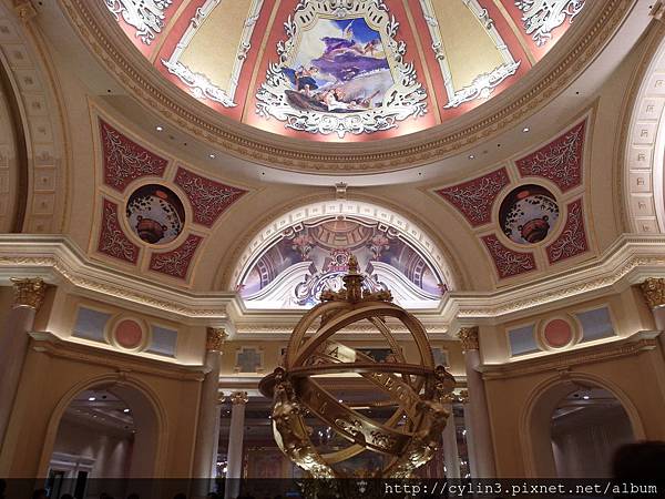 「威尼斯度假村酒店」建築充滿威尼斯特色,Check in時即被視為標的物的地球儀吸引,這兒每日還有固定時段會出現精心打扮的表演者,Check in時門卡內還有送一張即可拍兌換券,憑兌換券你可以與他們合照喔~