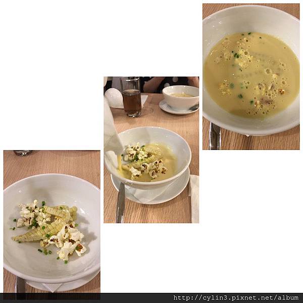 這六種醬料看起來就像保養的化妝水與乳液!一出現又讓我們忍不住一直拍照;六種將分別為:檸檬蜂蜜油醋、香檳蜂蜜油醋、巴薩米克油醋、凱薩乳霜、優格乳霜、蜂蜜芥末乳霜。這下~不只相機忙碌,嘴巴鼻子都忙碌了!大家忍不住六種一一試過!同桌飯友每個人喜好各不同,胖胖顰喜歡優格乳霜多一些。