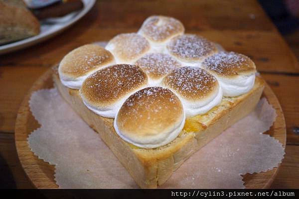 因為小表妹對棉花糖吐司(NT$80)很好奇,所以我們又加點了這份人氣甜點,老闆把棉花田烤的好漂亮啊~