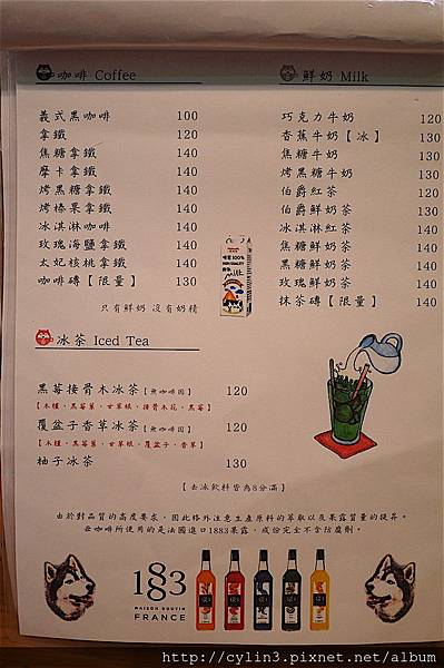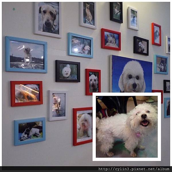 還有一面大大的牆掛滿了老闆的愛犬照片,數量多到我以為老闆的毛小孩已經當天使去了,結果忽然看到有一隻毛髮散亂瘦小的小白狗跑進來東聞聞西嗅嗅,小表妹說牠就是照片中那隻毛蓬蓬圓滾滾的小白狗,嗯~現在狗界也流行修圖是嗎?!(笑)