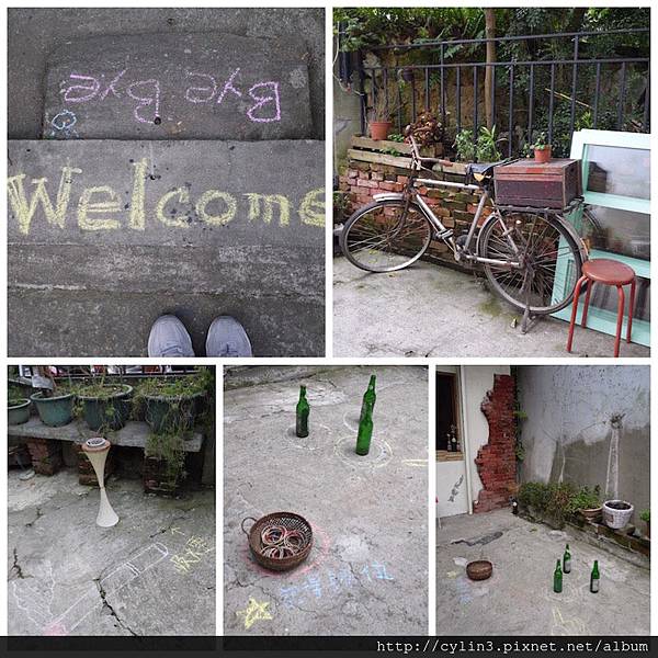 地上用五顏六色粉筆寫的字與塗鴉搭配舊酒瓶丟圈圈的遊戲,讓人童心未泯在這兒就逗留了好一會時間,