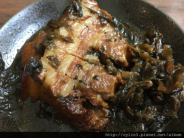 梅干扣肉(單點:NT$80,套餐:NT$150),這道菜超級無敵下飯的,肉被滷的入口即溶,很好吃,可惜這日老闆給的偏肥了些...