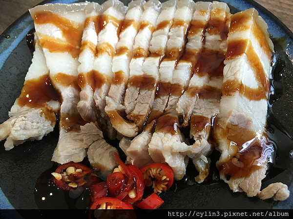 白切肉(單點:NT$70,套餐:NT$140),Anise跟姐姐兩人對這「白切肉」讚不絕口,覺得是今天主菜的No.1,但可能我一向就對白切肉比較沒fu~就覺得肉很新鮮很有彈性,淋上少許古早味醬油膏更添風味,整體還不錯吃,但不是我今日心中的No.1啦~