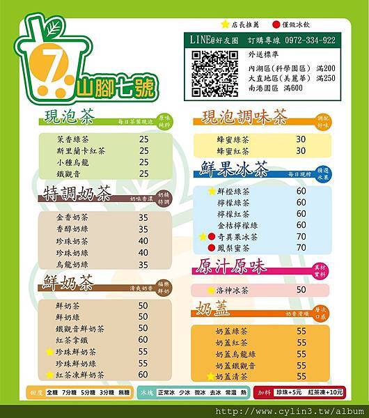 (山腳七號茶飲專賣店Menu請依官方粉絲團公佈為主喔)