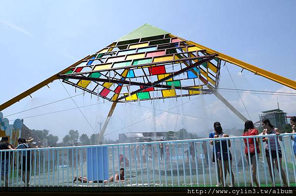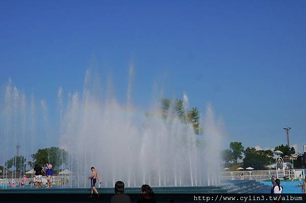 就是穿越那彩色設備囉~裡頭水柱大小不同,遊客們也是玩得不亦樂乎。