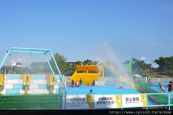 第一次到童玩節遊玩的我,園區內還滿訝異設備滿齊全的,有遮陽傘的休息桌椅、更衣室、脫水機、吹風機、販售部...等,甚至連超商都有耶~