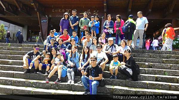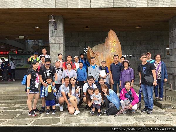 從台南新化出發搭乘了近3小時遊覽車,終於來到第一天重點景點「阿里山森林遊樂區」(查看門票資料),趁靜薇姐幫我們去買阿里山森林火車車票(票價與時刻表請參考阿里山森林鐵道官網),來一張家族大合照;老媽說上次來已經是超過30年以上的事囉...感覺規劃進步很多。