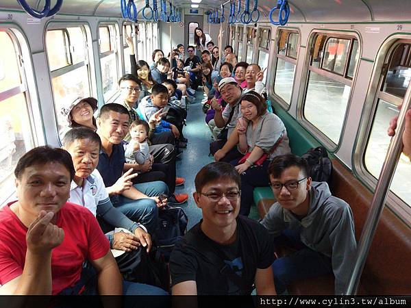 原本靜薇姐想安排搭小巴,但我堅持要讓大家體驗有名的阿里山森林小火車,但其實內心非常忐忑不安,好怕人多買不到票,或是太多人擠,老老少少不舒服或30多人就散掉了!壓力好大啊~超幸運的是這日遊客不算多,整節車廂就這樣被我們家族坐滿滿^O^。
