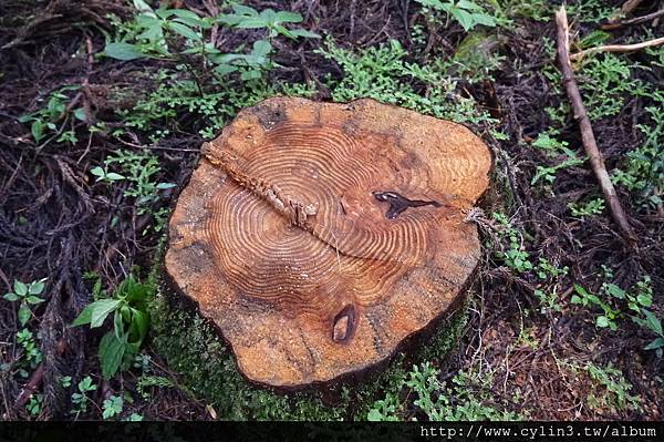 不知道為什麼發現路旁有棵感覺是很新被鋸的樹幹痕跡,順便就生態教學一下小朋友查看樹木幾歲?數數年輪...