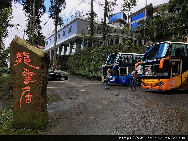 因為天空下起大雨,也開始起霧了,我們就決定往民宿「龍雲農場」移動,大概開了40分鐘,沿路路越開越窄小,看得我膽戰心驚的,忍不住咒罵服務小姐竟然還說遊覽車可以開入沒問題,這也太危險了吧...但沒多久也有另一團大巴遊覽車駛入,隔日才知道,我們司機大哥開了一條小路進來,其實還有一條稍微大一點也比較安全的。(嗚~害我擔憂安全問題只好放棄清晨去巃頂步道觀日平台觀看日出的計畫~>_<~)