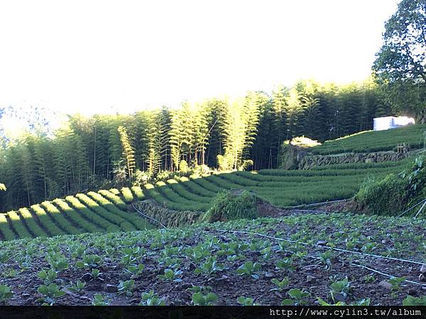 望月樓後方的菜園與茶園在燦爛的陽光下,拍照超漂亮的!