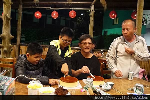 跟老闆借了場地,大家把準備的水果、零食點心、啤酒、飲料都拿出來,大舅舅還帶上茶葉泡茶,我也第一次秀了一下手沖咖啡(還是從東京搭飛機來的藍瓶子咖啡豆喔),大人們聊天,小朋友們玩遊戲,好不熱鬧,噹噹噹~我偷偷訂了台中采棠肴鮮餅鋪的楓糖布丁蛋糕幫七月份壽星們慶生,一端出時,壽星們好驚喜!尤其是兩位剛好這兩日生日的侄子,讓我也好開心~(這邊要特別謝謝龍雲農場願意幫我收蛋糕並騰出冰箱讓我放置)