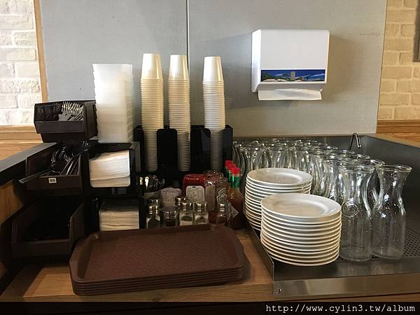 下圖照片中有個水龍頭就是白開水取用的地方,第一次來訪的朋友可別找不到或誤會那邊是洗手台喔XD