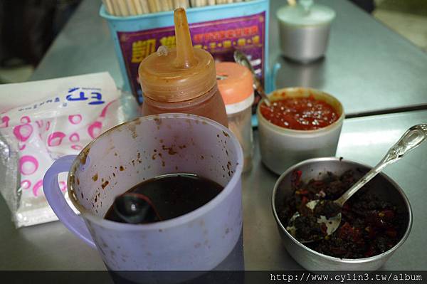 「崔記早點」在桌上放的調味料感覺店家自己有調過,其中最吸引我的是有豆鼓加上辣椒的,放一點點在蛋餅上讓蛋餅更提味,有機會來的朋友別錯過喔~