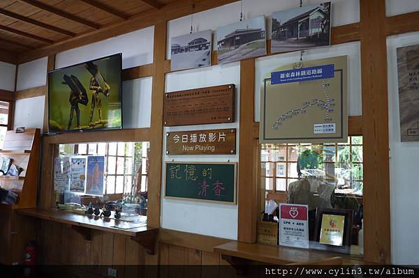 「羅東林業文化園區」內還有一個木造舊車站,現在已經改為服務中心,大家可以在這兒索取到一些參考資料,牆壁上也掛著一些舊照片、舊鐵道營運的路線圖...等。