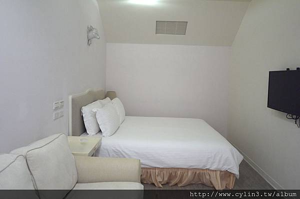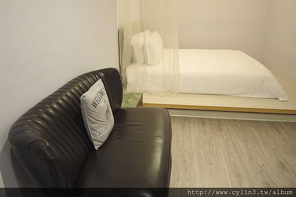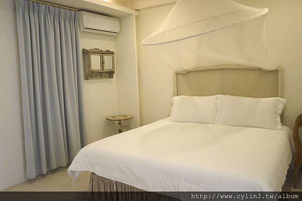 一旁也有浪漫的小床,格局與201輕法意雙人房一樣。