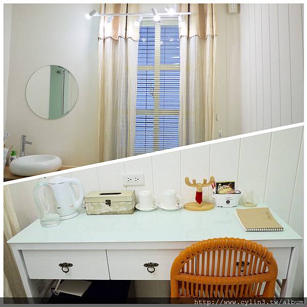 一進入白色系的裝潢與加入印入眼前,令人覺得很放鬆,也讓人忍不住拿起相機拍照了;你瞧~這透過白色的門灑進屋內的陽光,多迷人啊~