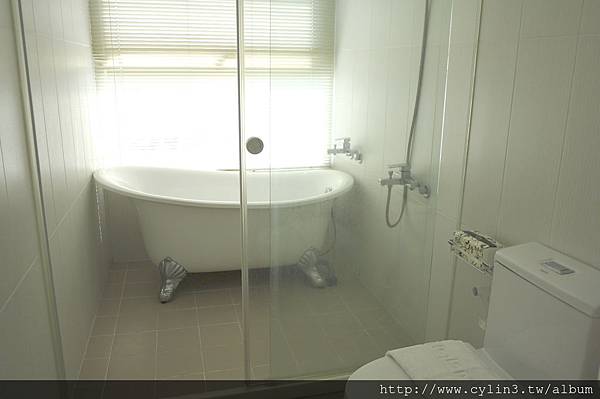 這間最讓我心動的就是浴室的大浴缸!感覺泡澡超舒適滴,唯一美中不足的是這兒不是在深山內,打開窗戶你可能會被看光光XD