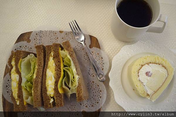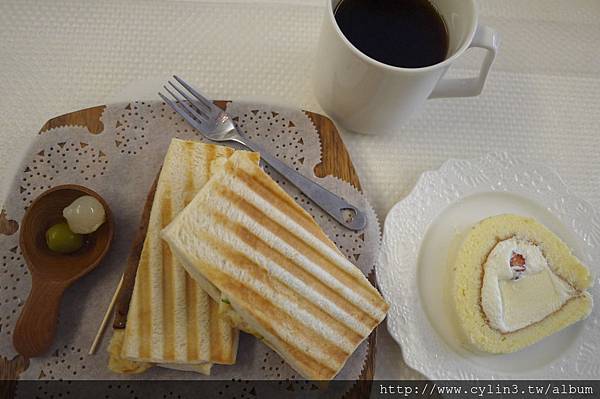 這日正常供應的早餐,煎的香噴噴的肉片與蛋搭配新鮮小黃瓜夾在吐司內,搭配美式咖啡,Janice姐姐覺得美味可口。