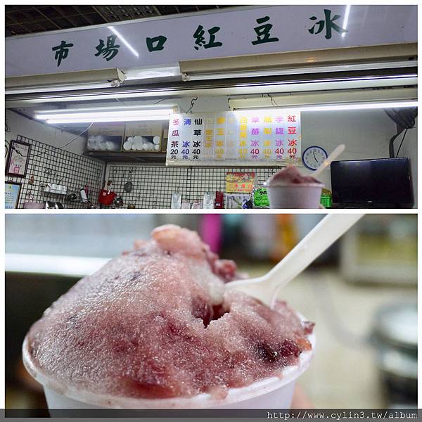 吃完「財記港式臭豆腐」不知道為什麼被Janice姊姊帶來隱身於菜市場內的這家「市場口紅豆冰」,滿滿一大杯很清涼的紅豆冰竟然才NT$40,覺得好吃,但是販售的阿婆臉有點臭臭的,讓我們百思不得其解是哪兒冒犯他嗎?
