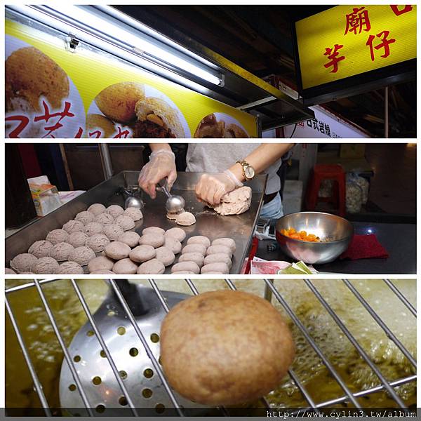 廟口附近這家芋仔丸,老闆娘現包現炸口味也不少,而且一顆蛋黃+肉鬆的芋仔丸才NT$20,你說說不買是不是對不起自己!話說~芋頭是真材實料,香氣上略感不足有些可惜,整體而言還是值得一試啦~畢竟回台北吃這個貴上很多哩!