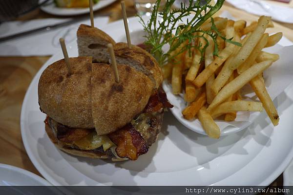 每次與朋友約吃紐約早餐女王Sarabeth's,若想吃鹹食,胖胖顰都會力推這個「與眾不同的漢堡(加蛋加培根)」,人多時可以請店員幫忙切開,但建議最多就是切為4份啦~
