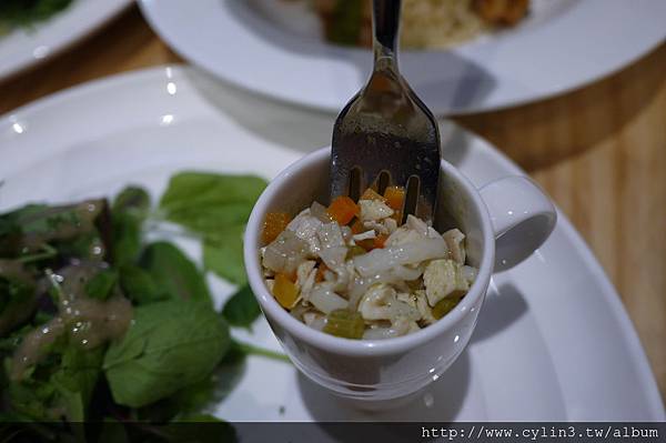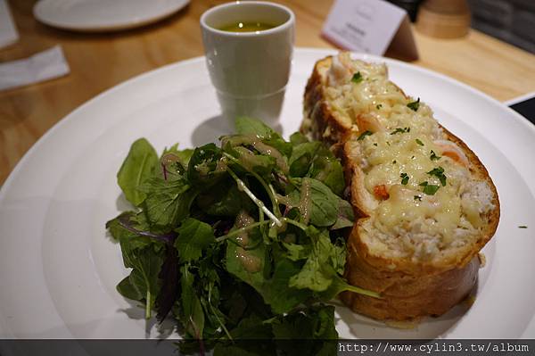 蟹肉起司法式吐司搭配著一小杯雞肉蔬菜湯,料很豐富,湯汁也好喝,真心想建議店家可以單獨販售。
