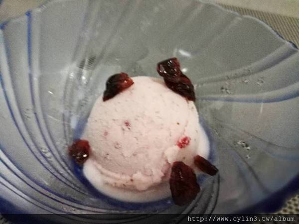 冰淇淋再做一些簡單的裝飾:撒上一些蔓越梅果乾、放上捲心酥、上頭擺上小水果,美味又漂亮,您看看是不是像外頭賣的冰淇淋聖代啦~