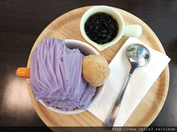 泡芙芋頭雪花冰(S:NT$60),這日很幸運還被老闆娘招待了手工珍珠。