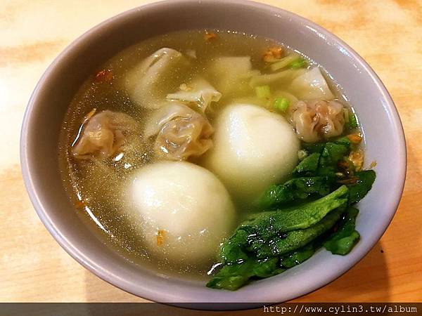 原本想說一碗才55元的湯圓餛飩應該份量不會很多吧?!台北市隨便一家餛飩湯都40元起跳,裡面數量少得讓你感嘆物價飛漲哩~沒想到這一碗端上桌雖然碗並沒有特別大,但湯圓就有2顆,餛飩有6顆左右,再加上一些茼蒿,湯還有些小蝦米與蔥油酥的調味,感覺CP值很高。