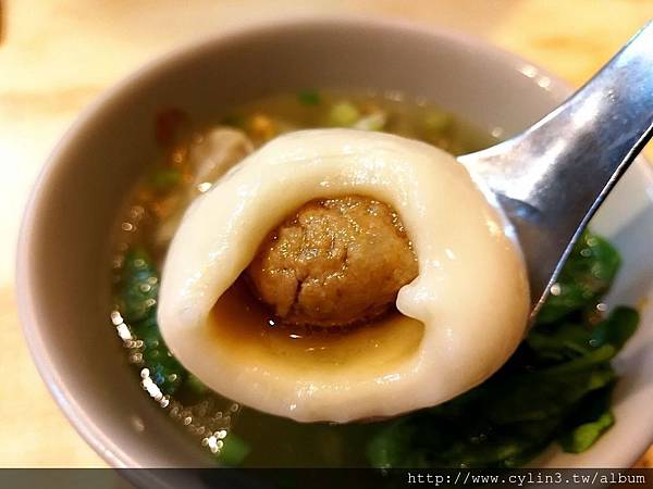 湯圓的部分我一定要大大稱讚!真的是讓我一咬下驚喜啊~相對於餛飩的皮薄,湯圓的皮就比較厚一些,但超軟Q的皮咬到中間時,忽然地燙口的肉汁爆漿似的液出,調味過的肉餡香撲鼻而來,趕忙吸吮,肉汁濃厚鮮甜的美味竟讓我聯想到鼎泰豐的小籠湯包,不同的是這精華美味都被糯米香的純白外皮裹覆著,多層次的風味與豐富的口感真的令人難忘,非常懊惱當日沒有買生湯圓回家煮可以解解饞,只能改日再訪這魂牽不已的醍醐味了。