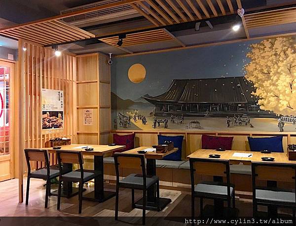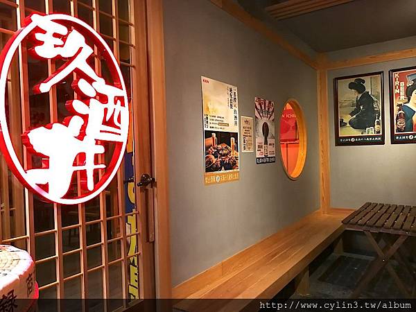 「玖酒井 食事町(大安店) 」裝潢走日式居酒屋的風格,主要以日本懷舊的海報、小物與木質桌椅佈置。