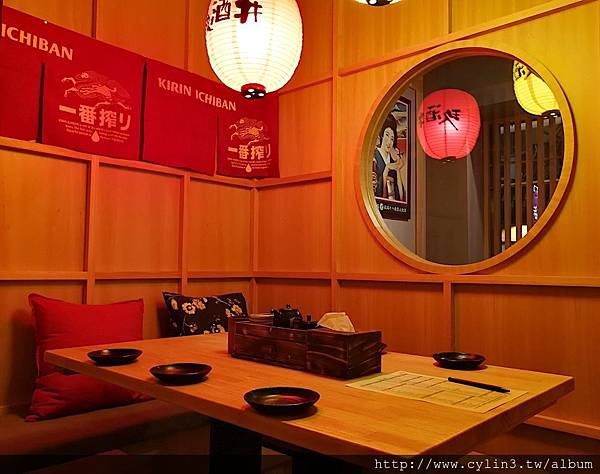 「玖酒井 食事町(大安店) 」還有一個小小的6人左右包廂,不過它隔著圓窗可以與戶外座位區互通,建議還是避免大聲喧鬧比較好。