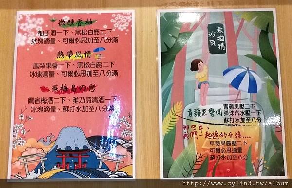 現場也有教學製作飲品的DM貼在牆面上,例如:沙瓦、High Ball、調酒、無酒精沙瓦等,像胖胖顰這種喝酒幼幼班的人按照步驟做,也能揮別暗黑飲品,調配出很好喝的酒喔~偷偷說,還滿有成就感的,哈!一不小心就上癮,想每一種都來上一杯嚐嚐看自己DIY的成果哩~