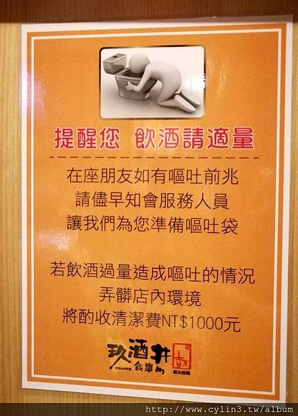 但是建議大家還是要酌量飲用啦~若是在店內嘔吐弄髒環境,可得付清潔費用NT$1,000喔~