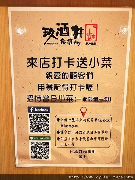 現在「玖酒井 食事町(大安店) 」有來店打卡送小菜活動,來的朋友可以參加喔~因為朋友M臨時缺席,我們擔心點了一整桌餐點吃不完就不敢打卡兌換了,嗚~胖胖顰好好奇店家送啥小菜啊~
