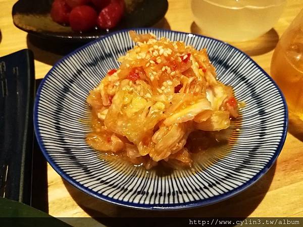 這道橘紅色的泡菜有些特別,口味非韓式也非台式,我一直覺得有些熟悉感,仔細想想不知道是不是有點偏黃金泡菜才讓我有熟悉的感覺?聽說這道是店家自製的招牌菜色之一,剛咬時不覺得會辣,但你可別小看它了,那個不嗆的辣味慢慢的就從餘韻延伸擴展出來,感受很有階段性,越吃越好吃,Janice一直讚嘆說很適合搭配乾麵享用,我們都覺得必點!聽說不少客人吃了乾脆買一罐回家哩~