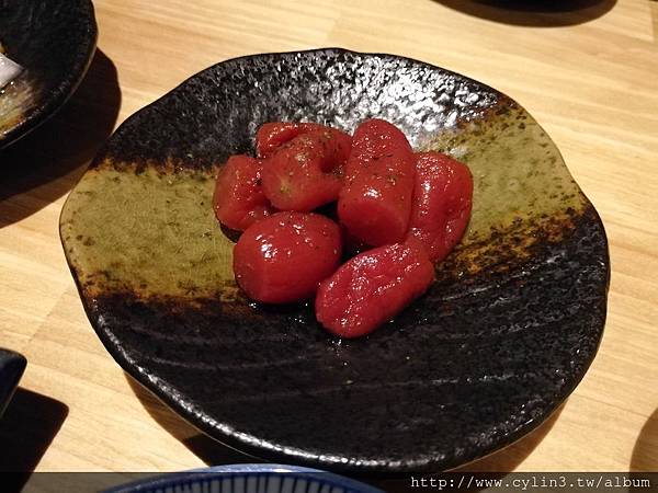 去皮以紫蘇醃漬入味的番茄是道很費工的料理(去年有做梅漬蕃茄超有心得的),酸酸甜甜的滋味令人好開胃,如果是家庭來用餐,小朋友會很喜歡這道唷。